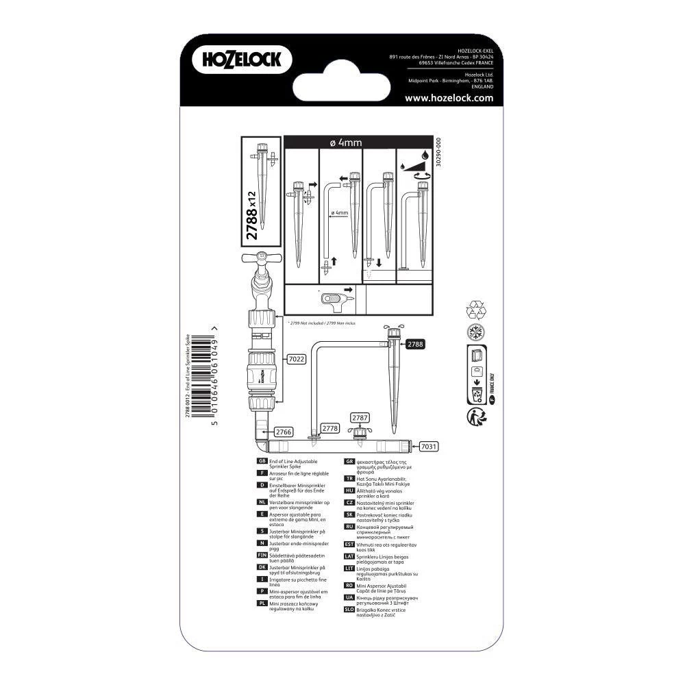 Hozelock End-of-line Adjustable Sprinkler Spikes Create an adjustable mini sprinkler (0-40 lph) at the end of a 4mm supply line