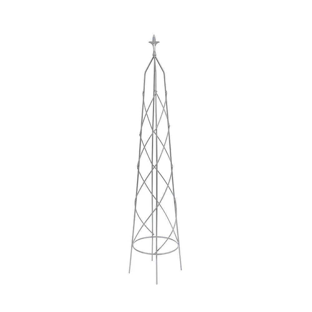 A one piece robust plant support with a contemporary structure shaped obelisk with final top.